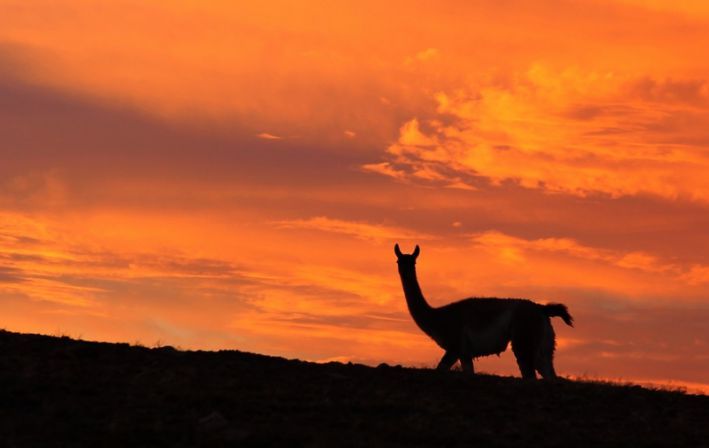 Malgré tout nous assistons à un très beau coucher de soleil avec les guanacos en premier plan.