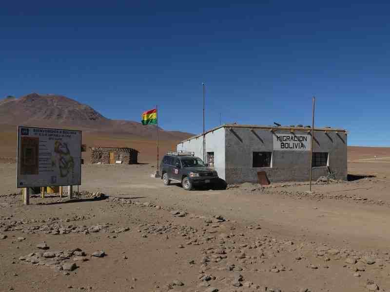 Nous quittons le camping pour nous rendre à la douane chilienne avant de monter vers la Bolivie, il est 9h00 et il n'y a personne, nous passons en 5 minutes les deux véhicules. Ensuite vient la longue montée en direction du Passo de Jama et c'est à 4600 mètres que nous prenons la piste pour nous rendre au poste frontière de Hito Cajon. Beaucoup d'activités  ici avec les TO qui conduisent les touristes dans le sud Lipez mais personne pour entrer aussi nous passons très rapidement mais pour le véhicule il faut se rendre 80km plus haut à 5033 mètres d'altitude au poste de douane qui ne fait que l'entrée des véhicules "estranjeros", c'est hyper compliqué.