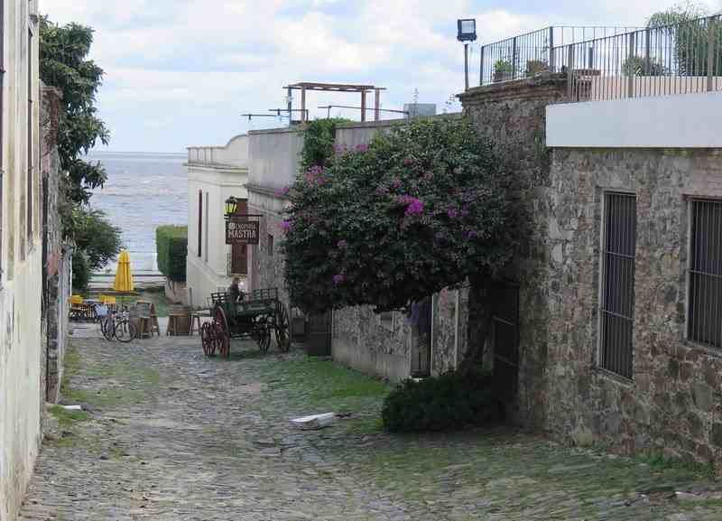Les nuits sont bonnes ici, le calme nous va bien et même si nous ne faisons pas grand chose, nous fatiguons vite aussi nous sommes vite au lit le soir surtout qu'il fait nuit vers 18h30. Température hivernal ce matin et en plus il y a du vent et bien ce n'est pas chaud. Nous bougeons malgré tout et partons visiter "Colonia de Sacramento" que nous avons toujours traversé trop vite. Le quartier historique est très agréable, ruelles pavées, de grands arbres encore en fleurs, de très vieilles demeures, de bons restaurants aux cartes alléchantes, nous testerons pour le déjeuner enfin de quoi passer de bons moments à flâner tout en marchant tranquillement. Nous faisons quelques courses pour les jours à venir car maintenant c'est certain, le bateau est retenu pour le retour et il devrait quitter Montevideo vers le 4/5 mai, nous attendons les nouvelles pour pouvoir embarquer. Cette décision vient du fait que nous sommes allés trop vite les deux premiers mois et qu'ensuite les inondations plus l'épidémie de dengue et de chikungunya ne nous permettent pas d'aller au Pantanal, à Iguazu que nous voulions revoir et au Parque Ibera les pistes étant impraticables. Il ne nous restait que la solution du retour et trouver un bateau rapidement, c'est fait.