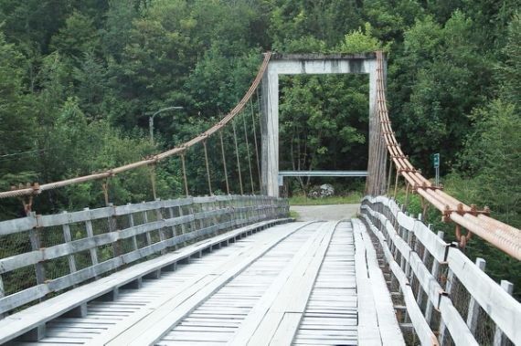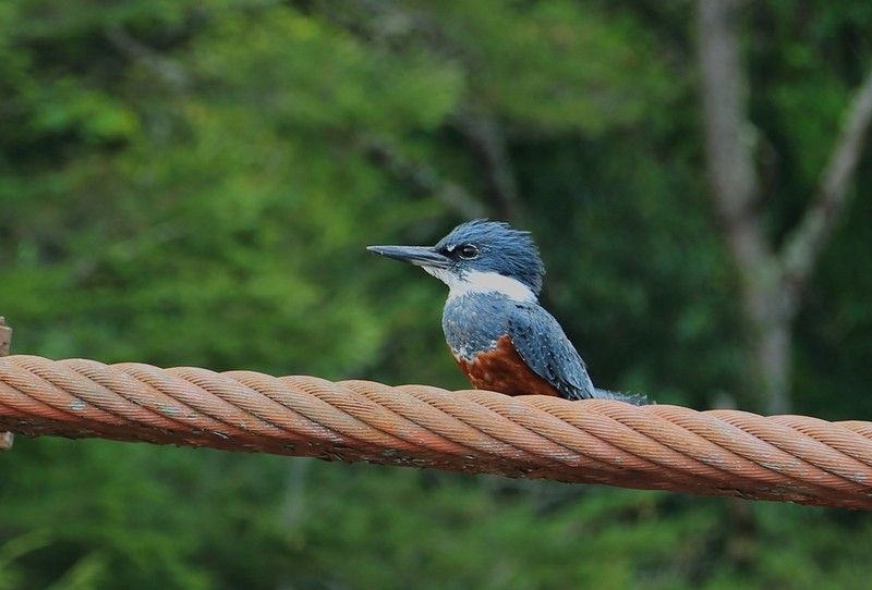 nous arrivons devant ce pont, impossible à franchir, il y a une barre de hauteur 2.3m. Nous y trouvons ce martin à ventre roux