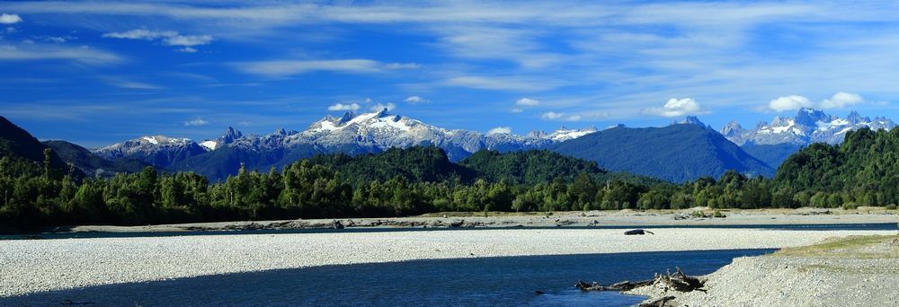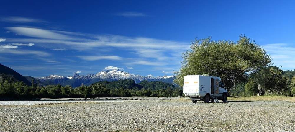 Nous nous préparons tranquillement ce matin, rien ne nous presse, juste une petite randonnée de quatre heures dans une végétation très dense et humide. Nous serons de retour pour déjeuner dans Hugo et attendre nos amis qui eux sont partis plus tard que nous. Le soleil nous réchauffe et nous en avons besoin car nous avons marché à l'ombre tout du long. Nous profitons de ces moments de répits pour faire un peu de ménage dans la cabine, la poussière des pistes est partout, il y a du travail pour tout enlever. Nous retrouvons Martine et Richard et partons en direction de Chaiten, toujours vers le nord. Nous retrouvons le goudron et nous apprécions car la tôle ondulée nous avons donné et en avons assez. Après 80 km nous passons le village de Junta (prononcer Rounta) puis nous bifurquons sur une piste qui doit nous mener vers des "termas" qui malheureusement sont fermés quand nous arrivons. Une piste part en face des "termas" et Richard nous dit qu'il y a un bivouac possible par là, nous y allons en pensant nous retrouver dans une "estancia" car nous passons une barrière. Au bout de la piste nous arrivons au bord d'un magnifique Rio, très large et une vue sur les montagnes très belle aussi. Et bien cela va faire un super bivouac et nous décidons d'y rester pour nous y reposer une journée de plus car tout le monde en a besoin. Soirée tranquille à regarder les changements de couleurs avec le soleil couchant.