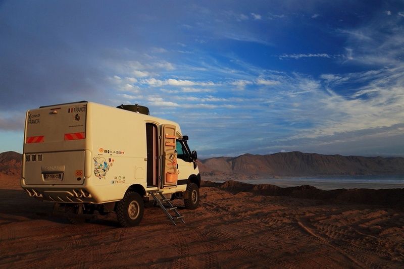 La nuit fût bonne et maintenant route toujours vers le nord avec un stop au "Parque Pan del Azucar", nous sommes dans le brouillard et la pluie qui ne va pas nous lâcher durant 200km. Nous voici sur la petite ville côtière de Caldera et nous filons sur le "parque PDA" et juste avant l'entrée nous nous posons sur un site superbe et là nous sommes certains d'être au calme car il faut un 4x4 pour y arriver. Le coucher de soleil est sympa et la petite balade sur la plage va nous redonner des forces. Ce soir nous irons au lit assez tôt car la fatigue est là. Cette remontée guère intéressante de la côte Pacifique nous fait faire de nombreux km afin de nous retrouver très vite sur San Pedro de Atacama où là nous savons que nous allons trouver notre bonheur. Demain visite du parc et repos avec restaurant de poissons si possible.