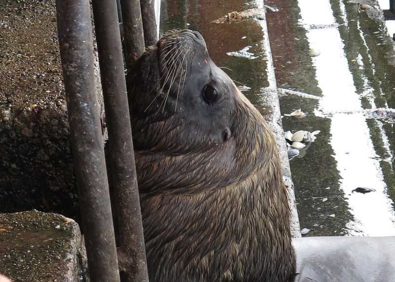 La brume qui monte de l'océan nous envahie ce matin et c'est donc dans le brouillard que nous quittons la Caleta El Manzano qui n'est accessible qu'avec un 4x4 car la remontée est vraiment très très raide. Nous faisons route vers Osorno où nous faisons un stop dans un magasin de bricolage pour acheter quelques bricoles et ensuite le plein du frigo juste à côté. Il est 11h30 quand nous reprenons la route cette fois ci pour Valdivia. Nous y arrivons juste avant la fermeture du marché au poisson et aux fruits et nous pouvons y voir des lions de mer, un tas de cormorans ainsi que des vautours qui viennent ici se faire nourrir par les poissonniers.