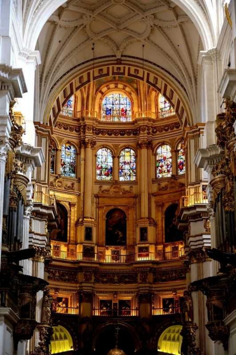 Nous entrons ensuite visiter l'intérieur de la cathédrale (5€/personne) cela va nous prendre une heure car c'est grand et beaucoup à voir. Nous remontons ensuite vers les palais sur les hauteurs de Granada d'où nous jouissons d'une belle vue sur la ville puis nous redescendons pour aller déjeuner. Il faut savoir que les horaires des espagnols ne correspondent pas aux nôtres. Rare de trouver un restaurant ouvert avant 13h30, il faut donc attendre sagement les ouvertures et il n'est pas exclu de voir des terrasses pleines vers 16h00, le soir ce n'est pas avant 21h/21h30 que les espagnols se mettent à table.