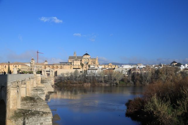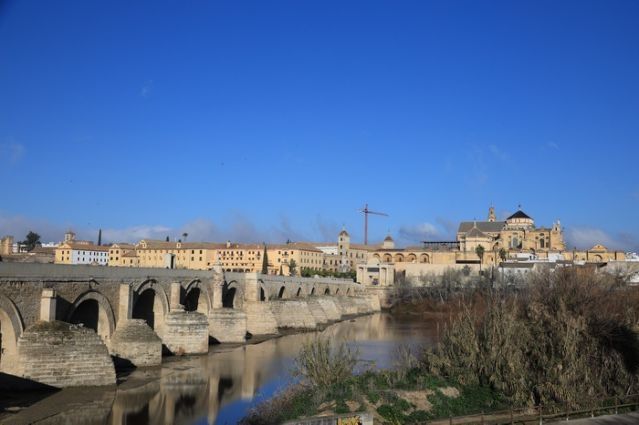 Nous ne sommes qu'à un kilomètre des monuments à voir, il fait frais cela va nous réchauffer de marcher un peu. Nous sommes déçus quand nous arrivons devant l'Alcazar qui est fermé le lundi, c'est bien notre veine ! Nous commençons à nous poser des questions pour le reste. Bon nous allons sur le pont romain (Puente Romano) et le traversons jusqu'au bout et revenons sur nos pas. Beaucoup d'oiseaux en bas, des cormorans, canards col-vert, hérons mais trop loin pour mon petit objectif. Il y a déjà beaucoup de monde partout, nous nous dirigeons maintenant vers ce qui sera le clou de notre matinée, la cathédrale (Mezquita-Cathedral). L'entrée se fait sur un grand jardin et une très grande tour, nous prenons nos billets et accédons rapidement à la cathédrale et là, boum, un gros coup sur la tête, c'est tout simplement extraordinaire à l'intérieur, un mélange de construction islamique et catholique où les deux se marient parfaitement. C'est majestueux et je suis vraiment sous le charme de ces artisans des deux bords qui ont fait un travail remarquable. Nous passerons une bonne heure à cette visite et sommes désolés de devoir quitter cet endroit car il faut avancer.