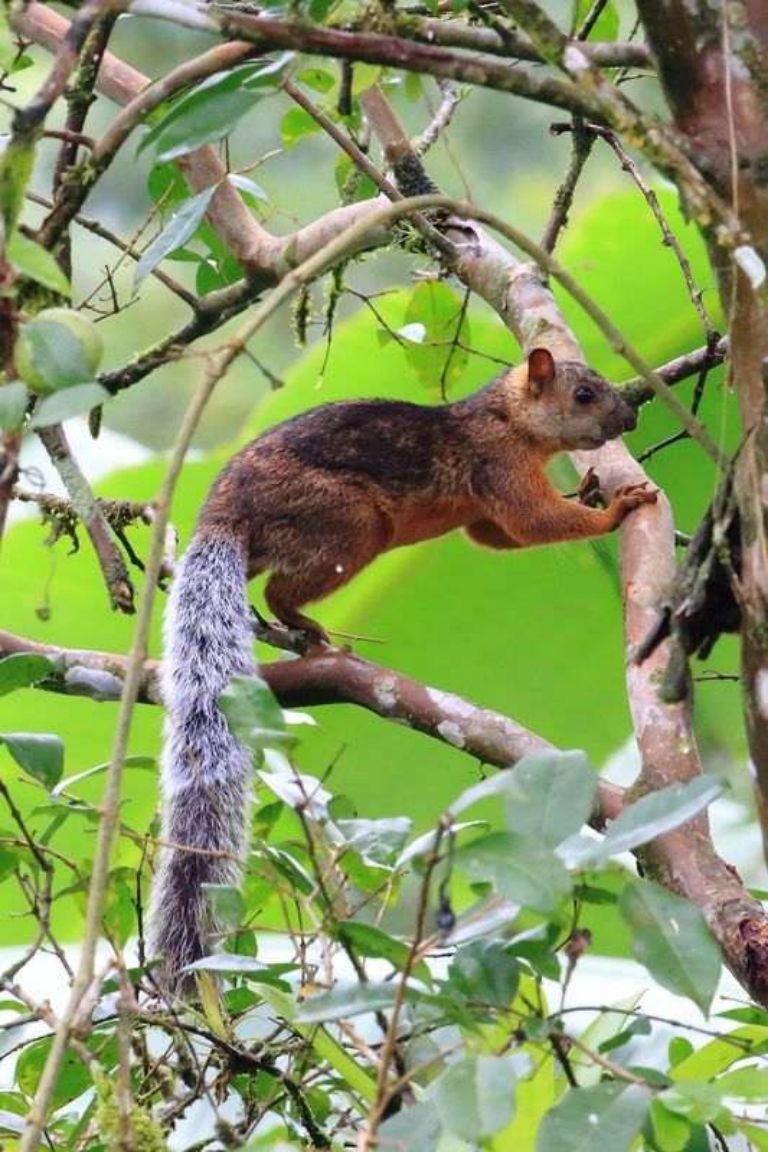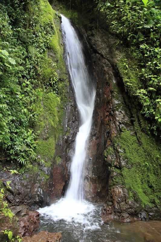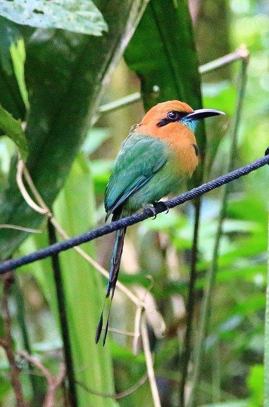 La balade se fait pour nous sans guide, nous suivons le sentier qui se fait dans un seul sens et donc nous ne croisons personne, vraiment parfait. Le sentier est complètement aménagé, nombreux ponts suspendus, nous nous promenons en hauteur parmi les arbres et la végétation luxuriante ainsi qu'une très belle cascade. Pas beaucoup d'oiseaux ici c'est trop touffu pour les voir, nous apercevons tout de même un motmot que je réussi à prendre en photo.