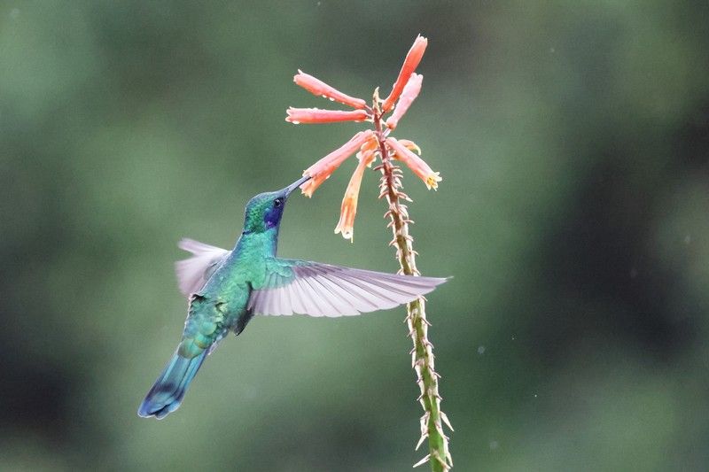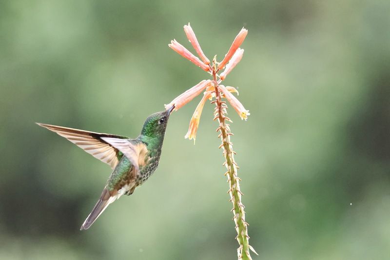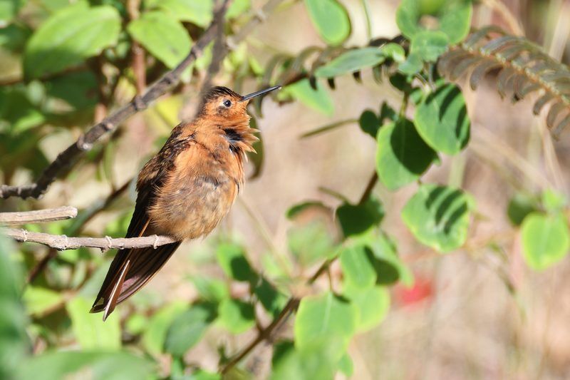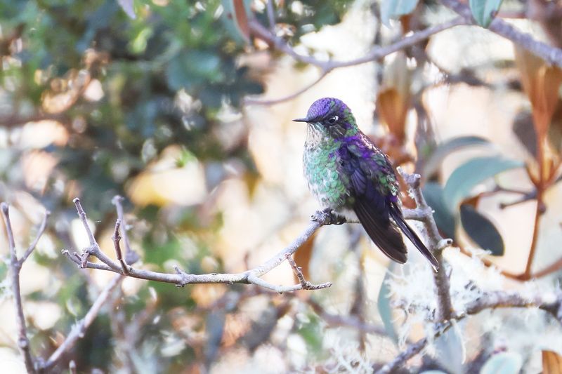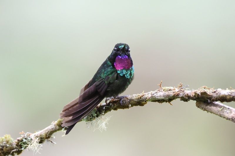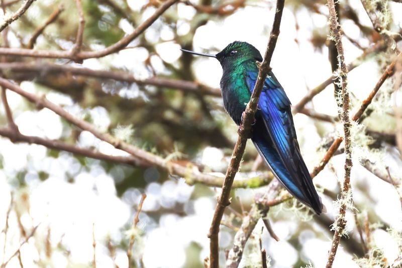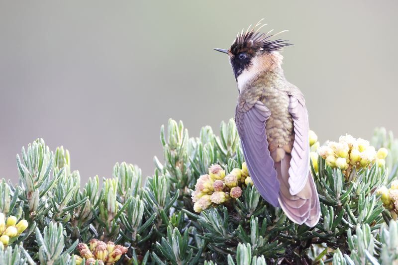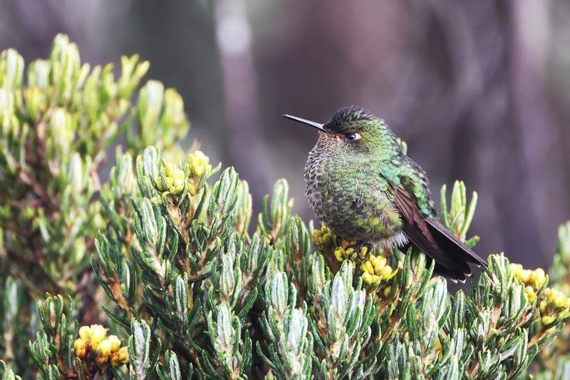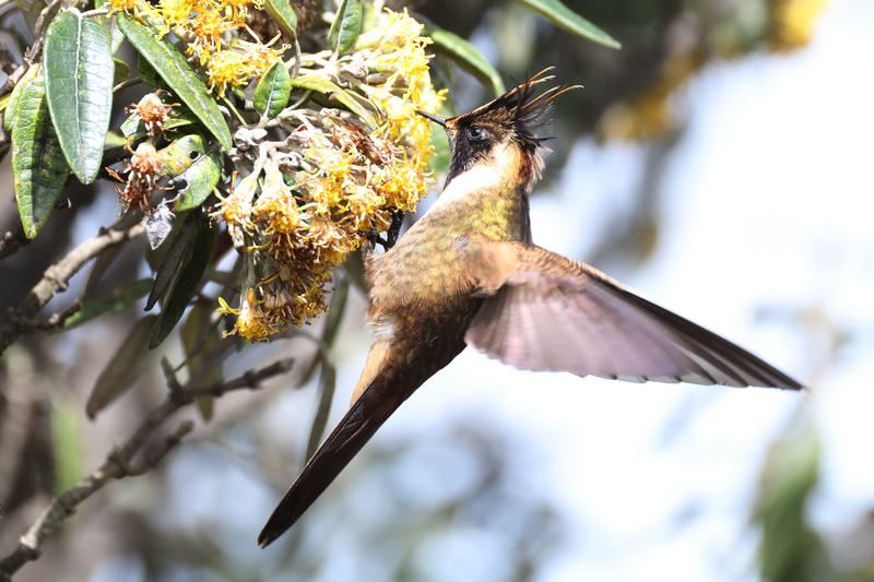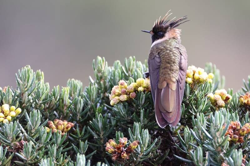En route pour "Les thermales del Ruiz" qui se situe à 3800m au pied du "Parc naturel national Nevado" . Nous arrivons pour prendre le petit déjeuner et filons vers l'entrée du parc qui est à 4138 mètres d'altitude. Cela va sans dire que nous ne nous sentons pas très bien, le mal de tête ne nous quitte pas. Nous aurons la chance d'y voir le colibri endémique de la Colombie que nous ne trouverons qu'ici, le Buffy Helmetcrest. Retour à l'hôtel en fin de matinée pour y déjeuner et profiter de notre après-midi à faire des prises dans le magnifique parc de l'Hôtel. La soirée nous verra prendre notre dîner et aller nous coucher assez tôt car les départs du matin vers les 4h30/5h00 nous fatiguent vite.