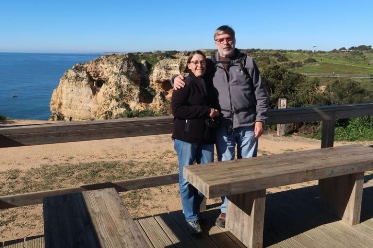 Nous partons en direction de l'est sur des petites routes pas toujours évidentes mais arrivons finalement au Ponta de Piedade qui va s'avérer particulièrement joli, nous aimons beaucoup ces paysages de rochers qui plongent dans l'eau. Nous allons marcher plus d'une heure trente sur le haut des falaises et rentrerons pour le déjeuner. Il fait faim car il est 13h30 et 14h30 en France.