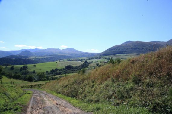 Nous arrivons en soirée après avoir pris que des petites routes jusque Bressouleille où nous trouvons une ferme affiliée à France Passion, la GAEC des Marmottes. Ils y font un super St Nectaire et nous nous empressons d'en acheter un gros, il est le bienvenu. De vastes pâturages s'offrent à nous et nous partons en balade sous un chaud et beau soleil.