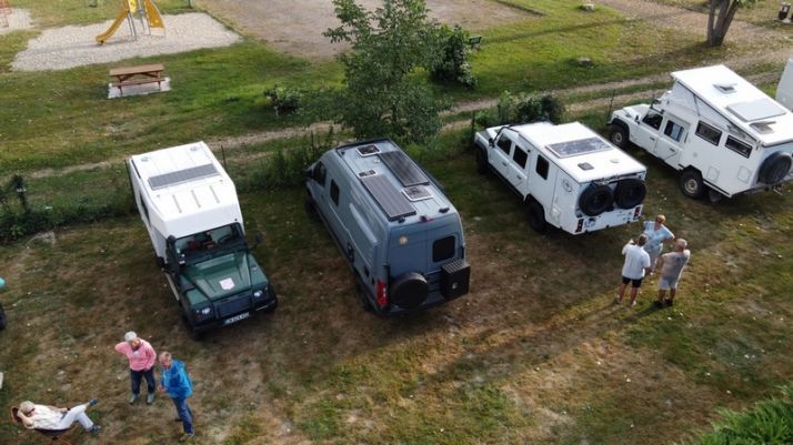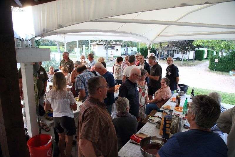 Nous sommes tous réunis maintenant en cette fin de journée dans un camping très sympathique. Nous sommes une quarantaine d'équipages et l'heure de l'apéritif arrive vite, nous commençons assez tôt, comme il se doit. Nos gentils organisateurs, Babette et Jean-Noël que nous connaissons depuis de nombreuses années sont aux petits soins pour nous tous et la soirée suivi du repas en commun sous un grand barnum va également être au top, c'est crevés mais contents que nous rejoindrons Hugo III vers 23h30.