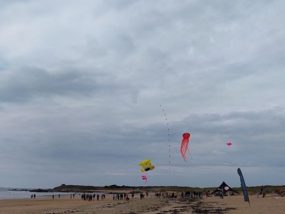 Nous quittons le parking de Rambouillet à huit heures et souhaitons une bonne expo à nos amis avant de partir. Pour nous direction la Bretagne qui va clore notre petit tour de France mais nous allons y rester plusieurs jours. La route est longue avec des centaines de ronds-points et des vitesses qui sont toujours en train de changer. Ce n'est plus possible de rouler chez nous et je vais même être flashé alors que je suis à la bonne vitesse 99km/h pour 100 sur une route limité à 110km/h, mais moi je suis poids lourd donc limité à 100km/h. Nous arriverons vers 16h00 et trouvons un emplacement sur une aire de repos réservée aux camping-car non loin de Carnac. Nous partons faire une balade sur la plage où il y a des gros cerfs-volants et profitons de quelques rayons de soleil mais le ciel devient vite sombre. Nous aurons un gros orage pour terminer la journée avant de dîner et d'aller au lit, nous en avons besoin.