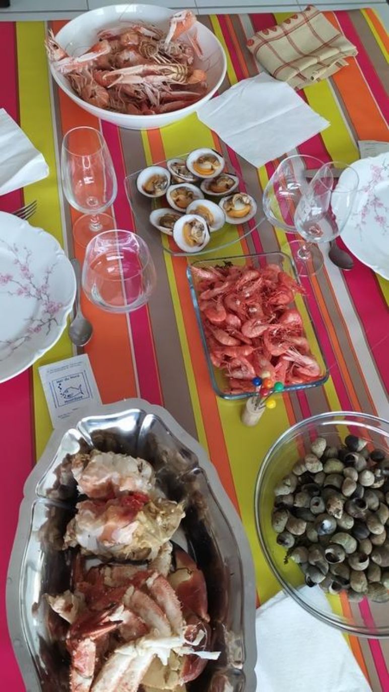Ce matin Yveline et Marcel nous conduisent au marché de Pornichet, nous y rencontrons quelques une de leurs connaissances et surtout nous allons acheter des fruits de mer . Là ce fut une grande surprise pour nous que de voir tous les poissonniers réunis sous une halle et où les produits sont frais et à des tarifs loin de ceux de la Dordogne. Tout ceci présage un succulent repas ce midi.