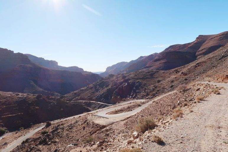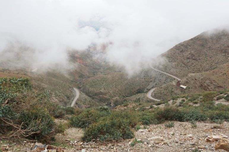 Nous partons visiter la Kasbah de Taroudan et cela va être vite fait car mis à part les murs extérieur, rien d'intéressant à l'intérieur, le souk doit être plus sympa à visiter pour les étrangers. Nous retrouvons Hugo III et compte tenu de l'heure, nous décidons de partir vers Marrakech et entamons rapidement la montée vers le col Tizi-n-Test. Cette route va nous laisser de très bons souvenirs car elle est vraiment superbe et certainement dans le top trois de nos découvertes marocaines. Même si la descente va s'avérer délicate sur quelques kilomètres, nous prenons beaucoup de plaisir à faire des stops photos. La vue sur les montagnes enneigées rajoute au plaisir que nous avons à faire de nombreux clichés.