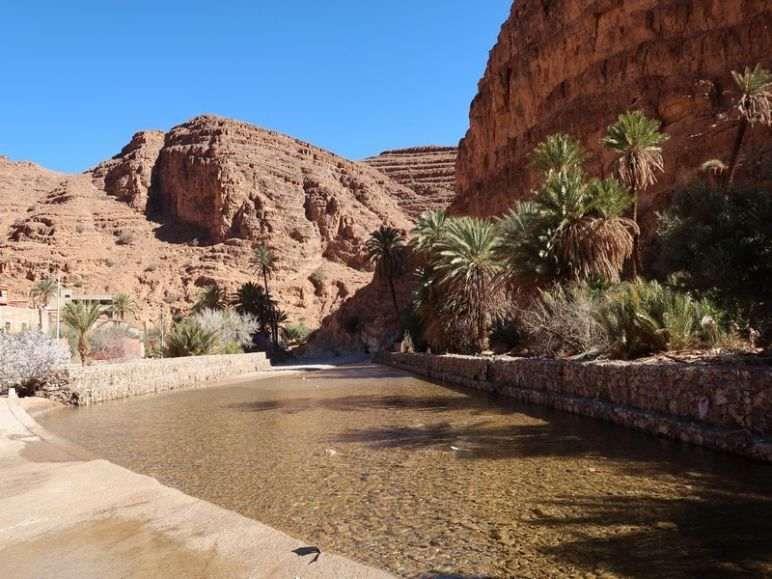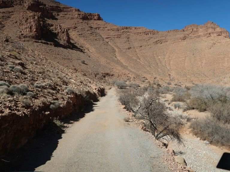 Une bonne nuit au calme, meilleure que la veille, ce matin gros nuages dans la vallée, nous décidons tout de même d'aller faire notre balade prévue hier soir vers les Gorges d'Ait Mansour. Nous allons passer trois heures trente sur les petites routes et finir par une vieille route complètement transformée en piste pour rentrer. La balade fut sympa mais j'ai les bras en compote, repos mérité cet AM sous un chaud soleil et toujours au calme.