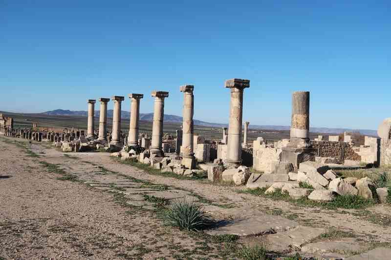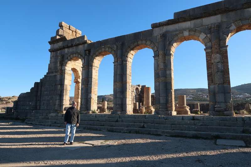 Ce matin si le soleil est là il est accompagné avec le froid, nous allons marcher à Volubilis pour nous réchauffer. Nous allons rester deux bonnes heures pour faire le tour de ces ruines romaines qui sont malgré tout très bien conservées. Il y a de magnifiques céramiques au sol, faut les chercher car certains endroits ne sont pas faciles d'accès. Ensuite nous prenons la route en direction d'Azrou où il fera encore plus froid, nous sommes plus en altitude. Stop au camping du coin au dessus d'un hôtel magnifique mais qui n'a jamais ouvert ses portes, mystère marocain.