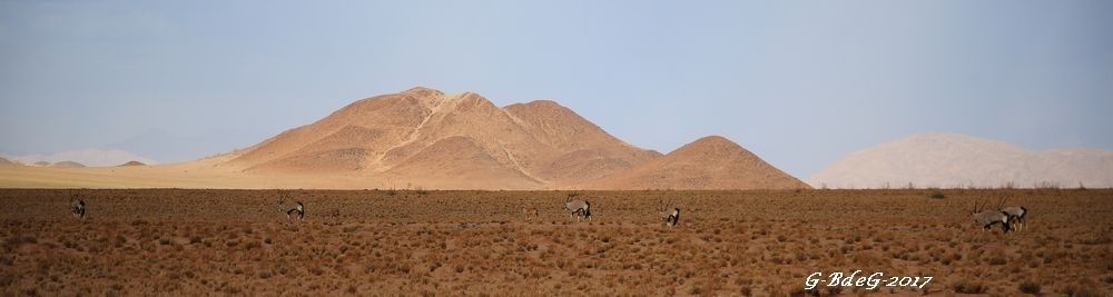 Une trentaine de kilomètres plus loin nous pénétrons chez nos amis, passons au bureau du Namib Sky dire bonjour et partons à la maison qui est 8km plus loin dans les dunes et au pied d'un pan de montagne. Notre arrivée est riche en émotions, nous sommes tellement contents de revoir ceux avec qui nous avions fait une traversée fabuleuse vers l'AmSud en janvier 2016 que les larmes picotent nos yeux.