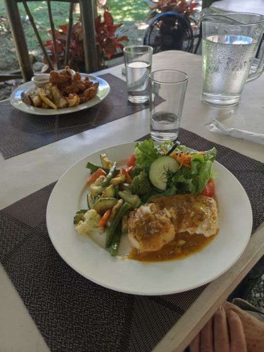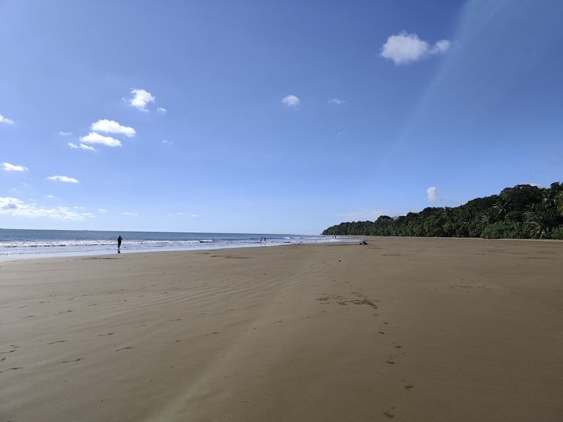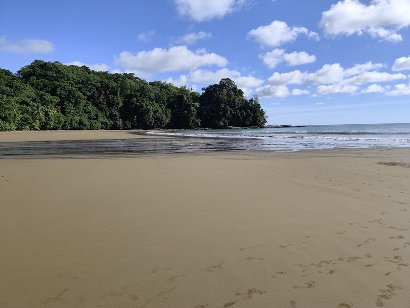 Les singes hurleurs portent bien leur nom, ils vont hurler à cinq heures du matin, bon nous étions réveillés et nous allons sur la terrasse de notre chambre pour essayer de les observer. Ils ont trop loin, nous nous préparons tranquillement pour le petit déjeuner qui sera à l'image de Nancy et Eric, c'est à dire très copieux et très bon. Il fait déjà très chaud ce matin, les 35° seront vite là. Nous partirons tous au restaurant avec accès à la plage .Après un très bon repas nous irons faire une baignade dans l'océan, l'eau est très chaude, nous aimons beaucoup.