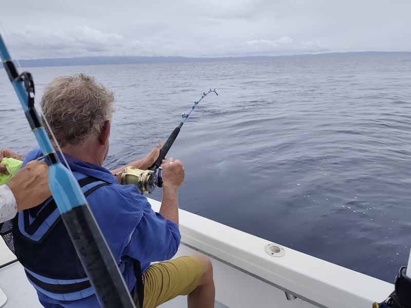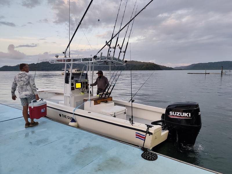 Une journée mémorable pour moi ce jour, nous partons à 4h du matin en direction de la frontière avec le Panama pour faire un stop dans un petit port où nous attend un bateau rapide. Nous sommes partis pour aller pêcher le thon, et ici le thon rouge est très réputé pour son goût mais aussi son poids. Nous commençons par pêcher de belles sardines qui vont être de très bons appâts. Les cannes à pêches sont prêtes , la partie va pouvoir commencer. Le pilote du bateau est un ami d'Eric et connaît tous les endroits où il faut aller mais surtout à des yeux de lynx et repère rapidement des dauphins et des thons qui pêchent là où il y a des sardines. Très vite une première prise va se faire et maintenant il faut ramener le thon à bord et là cela va durer deux heures trente ! Que d'efforts pour tirer le thon qui repart vers le large quand les forces reviennent et qui se laisse tirer quand il n'en peut plus. Cela va durer, nous nous relayons pour le ramener et finirons par "gagner". 65kg pour le premier, 75 pour le second et 85kg pour le dernier. C'était une grosse première pour moi, je suis crevé par tous ces efforts. Nous rejoindrons la maison tard en soirée et ferons un repas exceptionnel avec du thon frais, quelle belle journée, demain nous quitterons nos amis pour rallier la capitale où nous attendent d'autres aventures.